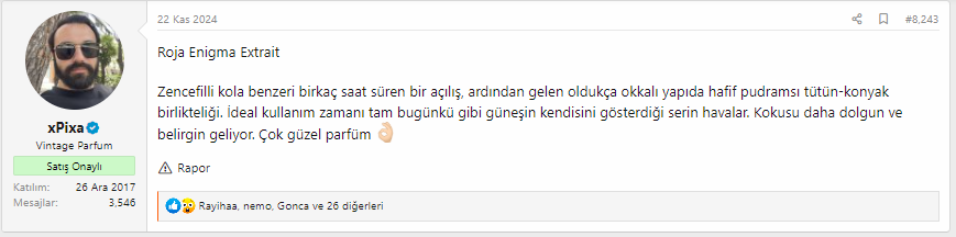 @xPixa @azzura @Umut Aras hocalarımız konuya daha hakimdirler.Roja Enigma Extrait