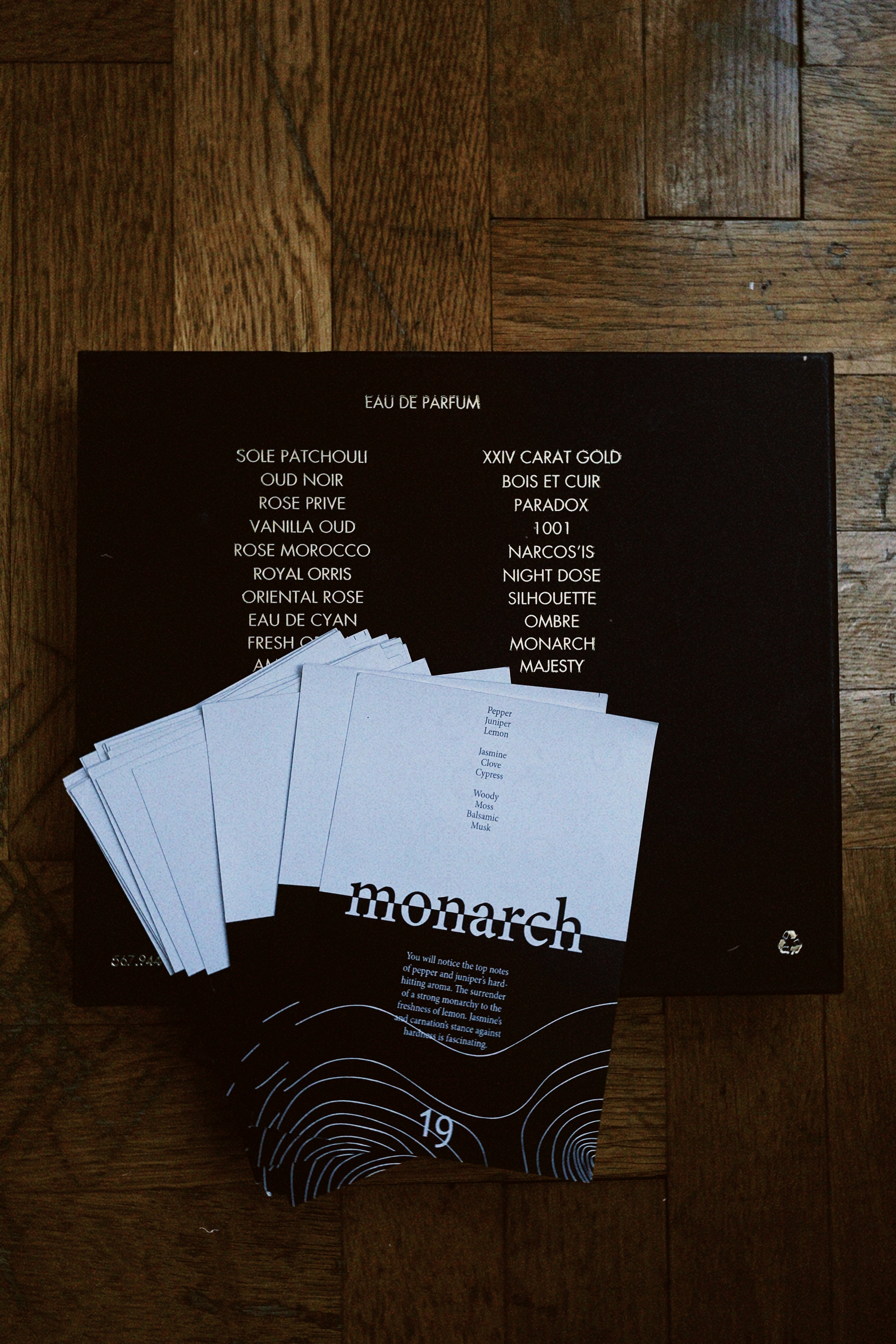Kuru bir deri,arkasından bitter bir çikolata havası alıyorum.Menekşe kullanımı orto parisi-cuoiumdakine benzer.Ud-paçuli-amber bu karanlık üçlemenin arkasından kendini hissettiriyor.Çok yoğun,çok fazlı,genel kullanıma çok hitap etmeyecek bir parfüm.Cuoium dan farklı olarak hayvansallığı olmayan bir koku.